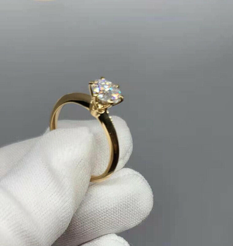 Solid 14k Gold 1ct Round Moissanite Ring(RO669)