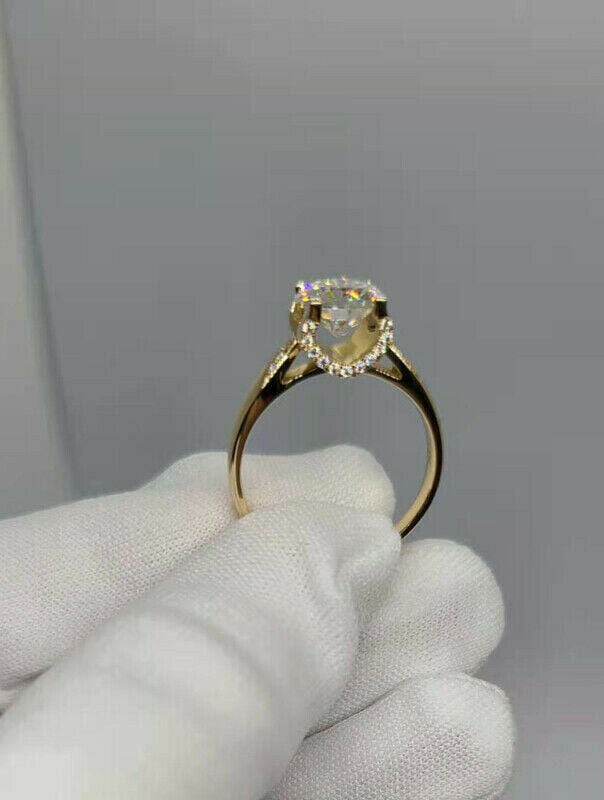 Solid 14k Gold 2ct Moissanite Ring with Side Stones (g0432)