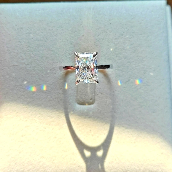 Solid 14k Gold 3ct (E VVS2) Lab Radiant Diamond Ring with Hidden Halo Lab Diamond(RD850)